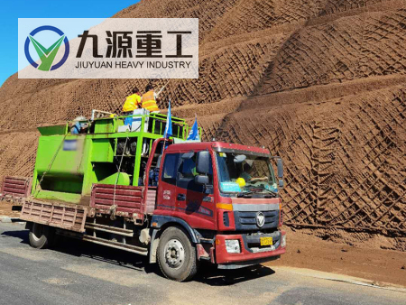 噴播機是應用于邊坡綠化的專業(yè)設備,通過本設備將土壤基質(zhì)、綠化草籽、保水劑、黏合劑、肥料等,在噴播機攪拌罐中與水混合成膠狀的漿液,用泥漿泵將其噴播于坡面上。由于漿液中含有保水材料、黏合材料、各種養(yǎng)分,在保證了植物生長所需的水和其它營養(yǎng)物質(zhì)來源的同時有效防止雨水沖刷對噴播材料的破壞,故而植物能夠健康、迅速地成長。
